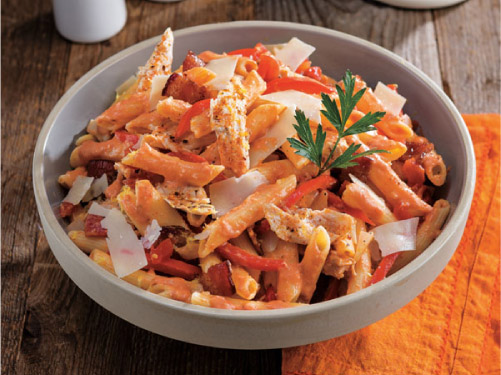 4.Add salt, pepper, zest, bacon and turkey mixture to pasta; toss well to combine. Serve topped with parsley and shaved cheese, if desired.