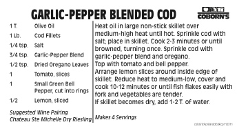 Garlic-Pepper Blended Cod Published January 12, 2012 at 360 × 203 in Garlic-Pepper Blended Cod Click to view this recipe in a new window